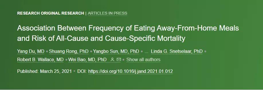 近日一項(xiàng)發(fā)表在Journal of the Academy of Nutrition and Dietetics的研究顯示,外出就餐與死亡風(fēng)險(xiǎn)之間存在關(guān)聯(lián)。