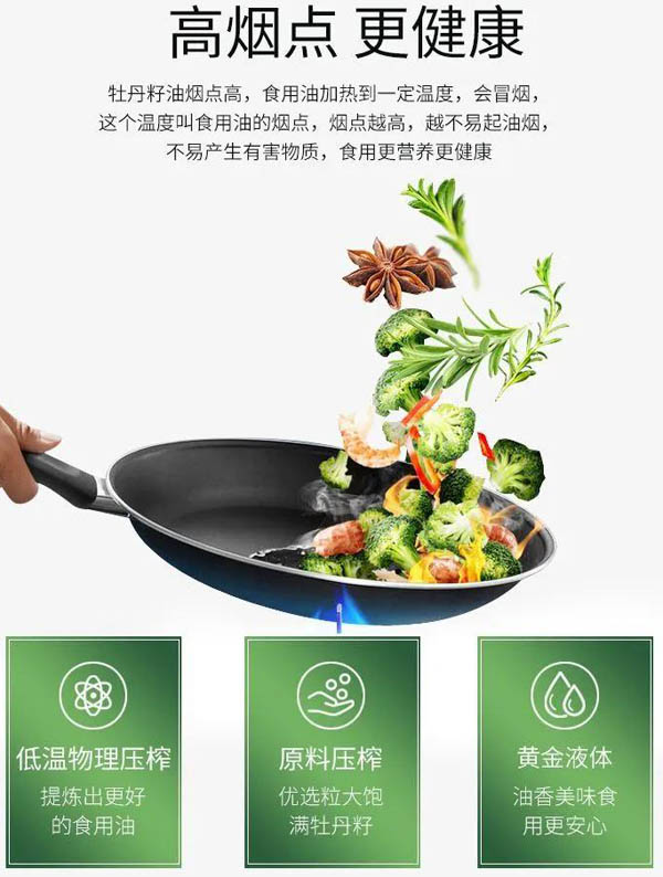 特別是喜歡制作煎炒烹炸的中式美食的家人們,別忘了使用煙點(diǎn)高且營養(yǎng)全面的牡丹籽油哦!