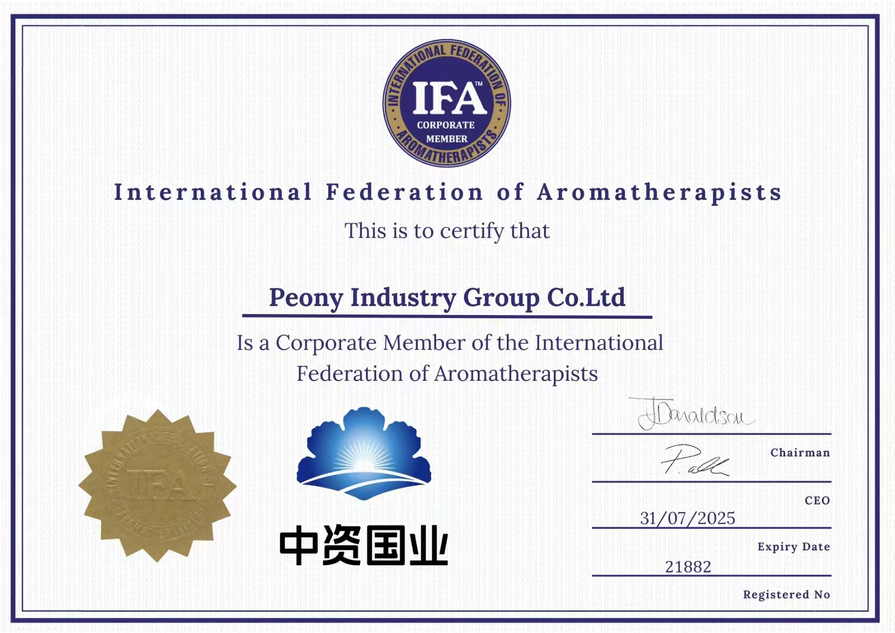 中資國(guó)業(yè)亦取得了擁有近40年歷史的芳療行業(yè)權(quán)威機(jī)構(gòu)——IFA國(guó)際芳療的認(rèn)可,成為IFA國(guó)際芳療企業(yè)會(huì)員,象征著在國(guó)際上開出屬于中國(guó)民族的一朵花。